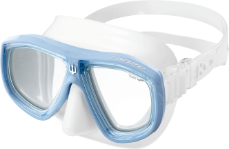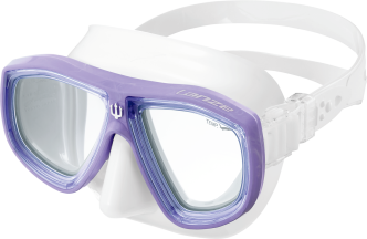 二重にレンズを抑えるインターロックシステムで安全性を追求したローボリュームで視界が広いスクーバダイビング・スキンダイビング用スタンダードマスク