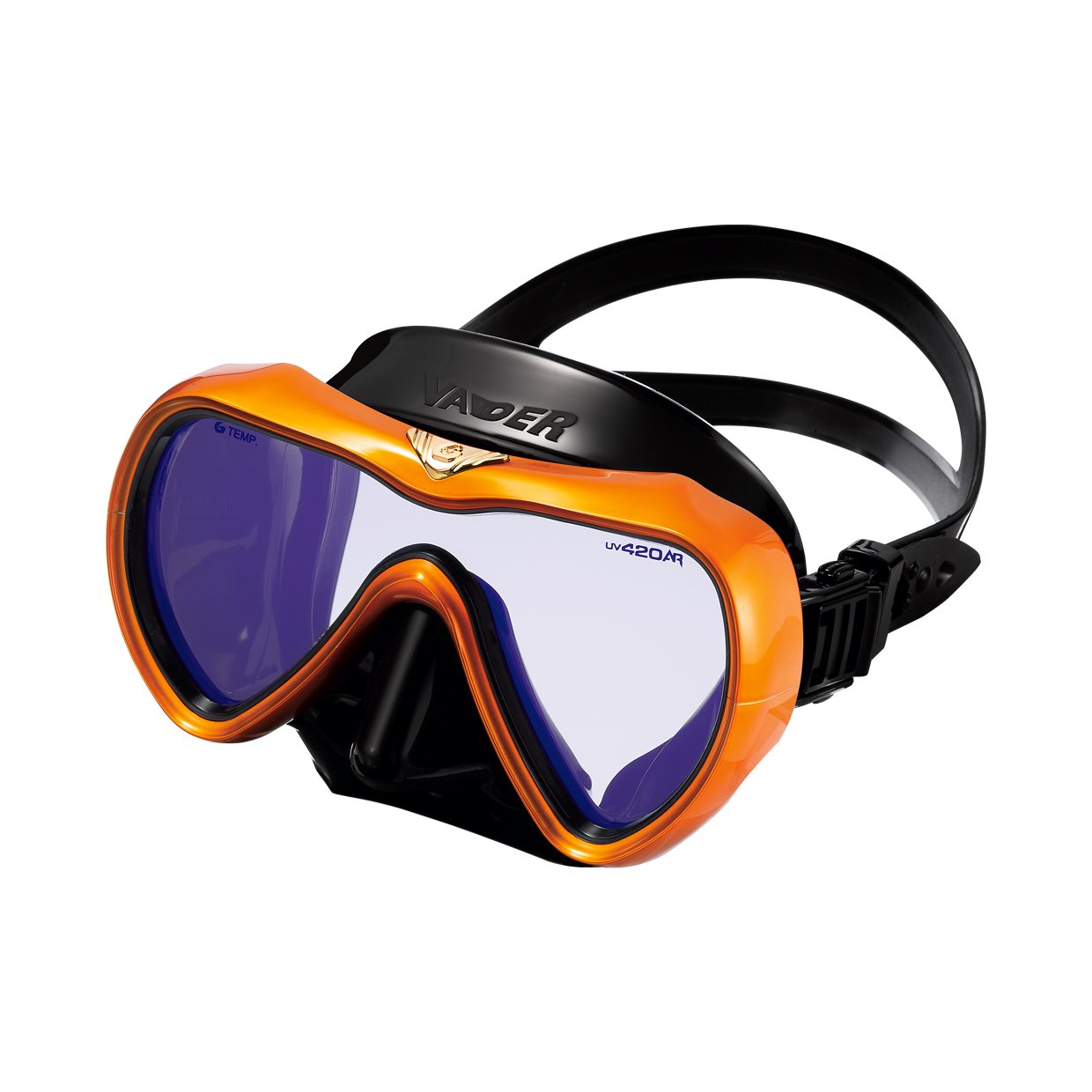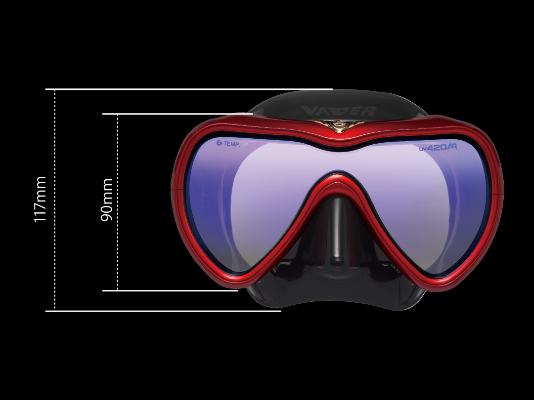 曲線により描かれたボディが実現した美しさのみならず、最高峰の機能を兼ね備えたモデル。ダイバーの手元がよく見える下方視界の角度をつけています。水中でのスクイズを起こしにくくするためにシリコン部分にダンパーをつけ水圧に負けないながらも顔を圧迫しないよう設計されています。スクーバダイビング・スキンダイビングに最適な一眼マスク