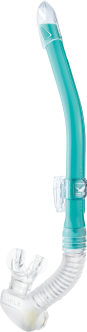 口元に大型排水室をもうけることで気道を確保し、スノーケルクリア後に水が残っても口内の水の逆流を防止します。高い排水性能とストレスフリーの水面移動ができるスクーバダイビング・スキンダイビングに最適なスノーケル