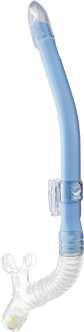 筒状の場合、スノーケル上部から波や飛沫により水の浸水の恐れがあるが、ドライアッパーは呼吸を妨げず、空気で入口をややサイドに設けることで先端からの水の侵入を防ぎます。