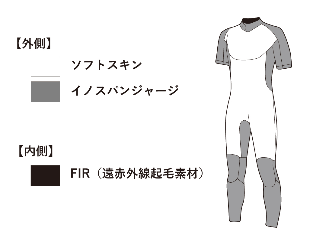 ○3mmネオプレーン ○外側:ソフトスキン×イノスパンジャージ/内側:遠赤外線起毛素材FIR